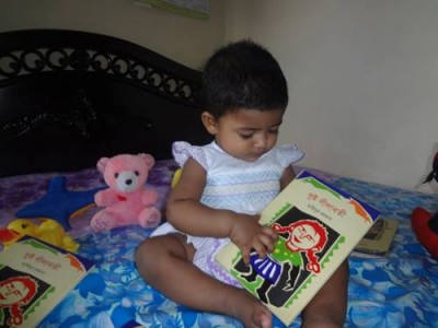 শিশুতোষ ছড়াগ্রন্হ 'দুষ্ট লীলাবতী' দেখছে এক বছর বয়সী আমার কন্যা 'শেহজাদী ফারহা অর্থি'।