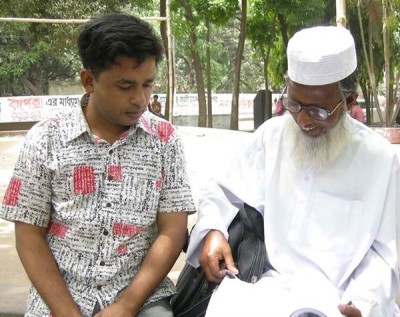 বাবার সাথে চমৎকার একটি ছবি। ঢাকা বিশ্ববিদ্যালয়ের টিএসসিতে লেখালেখি নিয়ে কথাবার্তা। সময়কাল ২০১২।