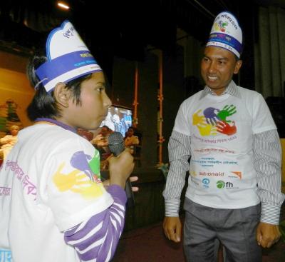 ছয়টি সংস্থার ডেলিগেট তাদের প্রতিনিধ শিশুদের নিয়ে মঞ্চে উঠেন। পুরো উন্মুক্ত আলোচনায় সঞ্চালকের ভূমিকা পালন করেন সেভ দ্য চিলড্রেন'র এমদাদ ভাই।