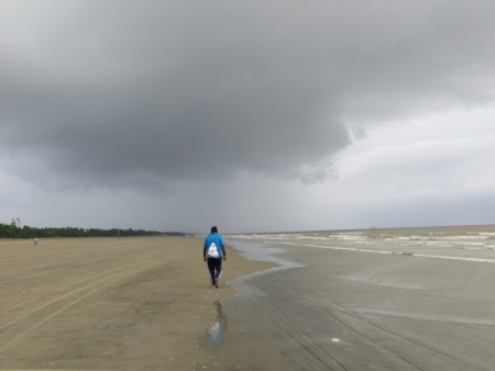 আদিগন্ত বিস্তৃত সমুদ্র সৈকত ধরে হেঁটে চলেছি আমি। সম্মুখ পাণে শুধু উপরে কালো মেঘের লুকোচুরি খেলার ফাঁক দিয়ে সুবিশাল নীলাকাশ। এক পাশে সাগরের নীল জল তীরে এসে ফেনায়িত ঢেউ হয়ে আলতো করে ছুঁয়ে দিচ্ছে আমার পদ যুগল, ঠিক যেন প্রেয়সীর আলতো স্পর্শ। আর ঠিক তার বিপরীত পাশে কৃত্রিম বনায়নের সবুজের সমারোহ। এই দুইয়ের মাঝ দিয়ে হেঁটে চলেছি আমি, সম্মুখপানে আর কেউ নেই। কানে গোঁজা হেডফোন, সেখানে বাজছে....