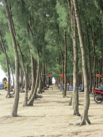 ঝাউগাছের তলায় পৌঁছতে হাসিব বলল, ‘চলেন লাঞ্চ করে নেই’। খুঁজে পেতে ঠিক আমাদের সামনেই ঝাউগাছের সারি যেখানে শেষ, সেখানটায় বীচের তীর ঘেঁষে একটা রেস্টুরেন্ট পেয়ে ঢুকে পড়লাম উদর পূর্তির উদ্দেশ্যে। চমৎকার আয়োজন, খাবারের মানও ভালো আর দাম তুলনামূলক অনেক কম অন্যান্য টুরিস্ট স্পটের সংলগ্ন রেস্টুরেন্টগুলো চাইতে।