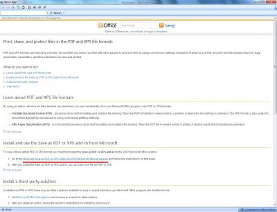 ► আগত Word Help উইন্ডোতে Microsoft Save as PDF or XPS Add-in for 2007 Microsoft Office programs লিংকটি ক্লিক করুন।