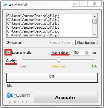 ► Loop animation অপশনটি ডিফল্টভাবে মার্ক করা থাকবে, এর ফলে এনিমেশনটি অনবরত চলতে থাকবে। যদি চান যে এনিমেশন একবার চলার পর বন্ধ হয়ে যাবে তবে এটি আনমার্ক করে দিন। Frame delay এর মাধ্যমে এক ফ্রেম থেকে অপর ফ্রেমের মধ্যবর্তী সময় ব্যবধান এবং এনিমেশনের Quality সেট করুন।