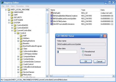 3. একটি নিউ DWORD value যুক্ত করুন যার নাম হবে NtfsDisableLastAccessUpdate