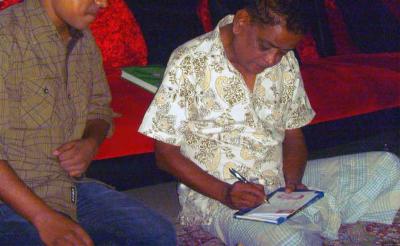 ১৩.১১.২০১০ সকাল সকাল চলে গেলাম শাহবাগ, উদ্দেশ্য একটাই স্যারের জন্য ফুল নিতে হবে..গিয়ে পড়লাম আরেক ঝামেলায় স্যারের প্রিয় কোন ফুল আছে কিনা তা জাননিা....তারপর যাই হোক নিলাম দোলনচাঁপা.... ফুল নিয়ে আর স্যারের একটা প্রিয় খাবার..যেটা তিনি তাঁর একটা বইয়ে উল্লেখ করেছিলেন; এই দুটো নিয়ে ছুটলাম স্যারের 'দখিন হাওয়ার' পানে.... আমি ভাবছিলাম স্যারের দেখা পাবো কিনা? ...স্যারের দরজার সামনে দাড়িয়ে দেখলাম দরজা খোলা উকি দিতেই দেখি স্বয়ং স্যার মেঝেতে বসে খবরের কাগজ পড়ছেন, ফুল দিয়ে জন্মদিনের শুভেচ্ছা জানালাম..স্যার একটু হলেও অবাক হলেন কারণ নিচ থেকে দারোয়ানরা তাকে জানায়নি যে কেউ এসেছে দেখা করতে, স্যার বললেন বসো ...কি পড়? ..স্যারের সব পাঠকের মতো আমি স্যার কে আলাপের শুরুতেই জানিয়ে দিলাম আমি আপনার বই পেলেই পড়ি আর নতুন বইয়ের অপেক্ষা করি।