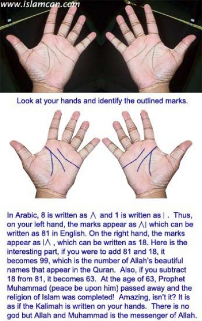 আপনারা কি জানেন আমাদের হস্তরেখার মধ্যে ইসলাম ধর্মের তথ্য দেওয়া আছে । নিচের ছবিটা দেখলেই বুঝতে পারবেন...