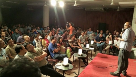 দেশে প্রথমবারের মতো নাকি হাসি নিয়ে এতো বড় আয়োজন হয়ে গেল ঢাকায়। ফেসবুকে এই কমেডি ক্লাবের এক্টিভিটি দেখে দোটানায় ভুগতে ভুগতে কিনেই ফেললাম দুটি টিকেট। দেখা যাক কি হয় বাংলাদেশের এই হাসির আয়োজনে । শুক্রবার নাকি ম্যারাথন হাসি চলবে এমন গ্যারান্টি দিয়ে আয়োজকরা জানালেন অবশ্যই সময়মতো চলে আসবেন এবং দীর্ঘ সময় থাকার প্রস্তুতি নিয়ে আসবেন। যাই হোক এয়ারপোর্ট রোডে নাকি কি বিশেষ কারনে ওভারব্রীজ বন্ধ তাই বারিধারা ঢোকার মুখে বেশ জ্যাম। সব জ্যাম পেরিয়ে অবশেষে অনুষ্ঠানস্থলে যেতে সাড়ে ৫টার পেরিয়ে গেল। বাইরে থেকে ভেসে আসছিল ধুম-ধাড়াক্কা টাইপ মিউজিক। মাঝে সাঝে মাইক্রোফোনে কথা এবং ফাকে ফাকে দর্শকদের হাসির রোল। যাইহোক সব আনুষ্ঠানিকতা পেরিয়ে হলরুমে ঢুকতেই চোখে পড়লো ষ্টেজে দাড়ানো এক মধ্যবয়সী লোক রীতিমতো হাসির ফোয়ারা বসাচ্ছেন পুরো হল ভর্তি দর্শকদের। কিন্তু অন্ধকারে ঠিকমতো কাউকেই দেখছিলাম না। তবে, এতো লোক দেখে আমি রীতিমতো ভ্যাবাচ্যাকা খাওয়ার অবস্থা। কমেডি দেখতে ঢাকায় এতো লোক তাও আবার হলভর্তি। বিশ্বাস হচ্ছিল না।