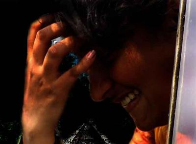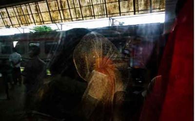 - মিরা বমি করছে ট্রেনের জানালার বাইরে মাথা রেখে।