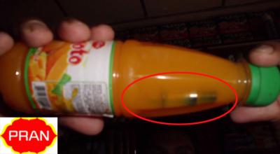 প্রাণ জুসের একটি বোতলে লোহার নাট-বল্টু পাওয়া গেছে। এ মুহূর্তে একটি বেসরকারি প্রতিষ্ঠানের কর্মকর্তার কাছে বোতলটি কর্ক (ছিপি) না-খোলা অবস্থায় রয়েছে। এর মধ্য দিয়ে জনস্বাস্থ্যের জন্য ভয়াবহ ঝুঁকিপূর্ণ দিকটি বেরিয়ে এলো। অনেকেই বলছেন, জুস বা এ ধরনের পানীয়ে প্রায়ই ভেজাল বা দূষিত পদার্থ পাওয়া যাচ্ছে।