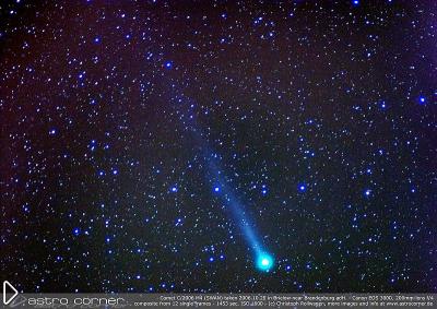 রাতের আকাশে হঠাৎ দৃশ্যমান হয়েছে সবুজ ধূমকেত -সোয়ান। খবর ২৪ শে অক্টোবর ২০০৬. ধূমকেতু সোয়ানের মনোহরণকারি এ ছবিটি তুলেছেন পিট লরেন্স ২০০৬ এর ২৪ তারিখে ওয়েস্ট সাসেক্স ইউ.কে. থেকে। ওনার ভাষ্যমতে, ‘ধূমকেতু সোয়ান আরো উজ্জ্বলতর হয়ে ৪.৫ ম্যাগনেটিউড সম্পন্ন হয়েছে। খালি চোখে দেখবার মতন অবস্থায় রয়েছে।'