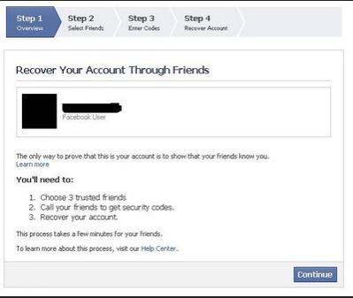 ৫. আপনার আসল হ্যাকিং শুরু হবে এখন । এই পর্যায়ে ফেসবুক ৩ জন ব্ন্ধু সিলেক্ট করতে বলবে। তাই আপনাকে আগেই তিনটি ফেক আ্যাকাউন্ট খুলতে হবে। এবং যার আ্যাকাউন্ট হ্যাক করবেন তাকে ফ্রেন্ড রিকুয়েস্ট পাঠানো লাগবে। ফেসবুক এই ৩ টা আ্যাকাউন্ট এ পাসোর্য়াড কোড পাঠায় দিবে যা কিনা আপনারই ফেক আ্যাকাউন্ট ।