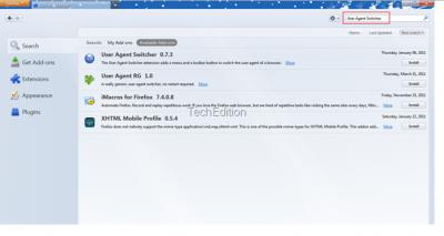 ২।এবার নতুন একটা উইন্ডো আসবে । সেখানে সার্চবারে লিখুন User agent Switcher