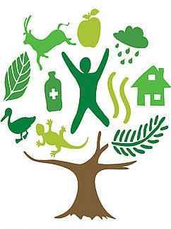 বিভিন্ন প্রকার নকশা দ্বারা বন থেকে প্রাপ্ত বিভিন্ন মূল্যবান দ্রবাদি দেখানো হয়েছে। বন মানুষ ও প্রাণবৈচিত্রের জন্য বাসস্থান যোগায়। খাদ্য, বিশুদ্ধ পানি ও নির্মল পরিবেশ ও স্থিতিশীল বৈশ্বিক জলবায়ুর উৎসও হলো বন। লোগোতে উপস্থিত সবগুলো উপাদান আমাদের এই বার্তা দেয় যে, এসব উপাদান মিলে ৭০০ কোটি মানুষকে টিকিয়ে রাখার জন্য প্রতিনিয়ত সংগ্রাম করে যাচ্ছে।