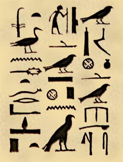 Hieroglyphs were the symbols used by the ancient Egyptian Priests and Scholars to represent, what we today would call, writing. Hieroglyphics is the word used for the art of writing with hieroglyphs. Even though the 'pictures' were visually descriptive, these were in fact phonetic symbols, just like our present alphabet, but it did take quite some time for this to be established.