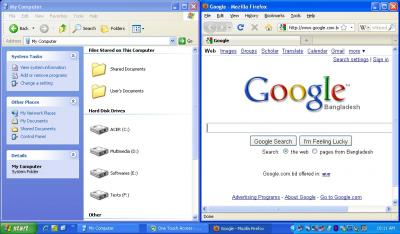 উইন্ডোজ৭-এর কিছু ইউনিক ফিচারের মধ্যে একটি হোল আপনার পিসির স্ক্রীণকে দু'টি স্ক্রীণ হিসেবে ব্যবহার করা যাবে। অর্থাৎ দুইটা উইন্ডো ওপেন করলে আপনার স্ক্রীণটা সমান দুই ভাগে ভাগ হয়ে যাবে আর দুটো উইন্ডোই পাশাপাশি ম্যাক্সিমাইজ হয়ে থাকবে। (স্ক্রীণশট দিয়েছি)। আপনার পিসির পর্দা যদি প্রশস্ত (ওয়াইডস্ক্রীণ) হয় তাহলে এই ফিচারটি আপনার জন্য বেস্ট। আর ফিচারটির নাম এরো স্ন্যাপ।