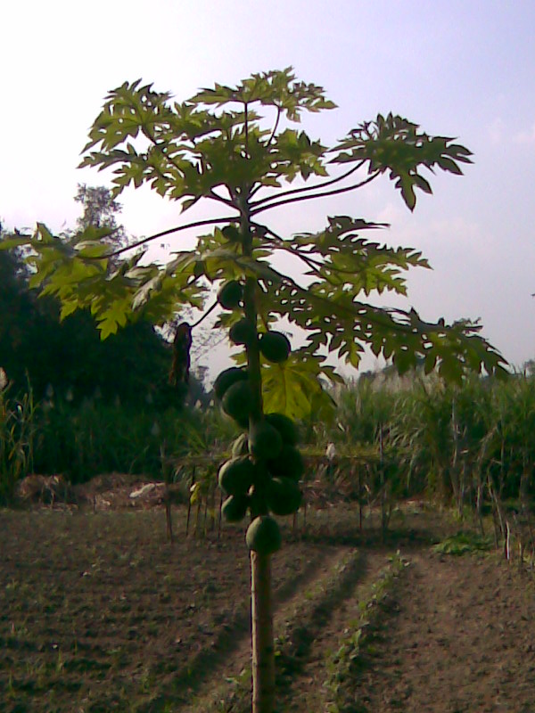 ছোট্ট একটা পেঁপে গাছ। আর তার গায়ে অনেকগুলো ছোট্ট ছোট্ট পেঁপে।
