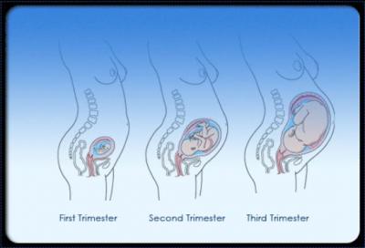 গর্ভধারনের ১ম থেকে ১২ সপ্তাহকে ধরা হয় ফার্স্ট ট্রাইমেস্টার। ২য় ট্রাইমেস্টার ১৩ থেকে ২৭ সপ্তাহ এবং ৩য় বা শেষ ট্রাইমেস্টার ২৮ সপ্তাহ থেকে বাচ্চা জন্মের আগ পর্যন্ত সময়কাল।