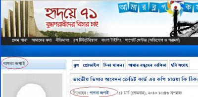 ঐ ওয়েবসাইটে আমি রেজিস্ট্রেশন করি নাই। আপনাদের মাঝে কি দুই জায়গাতেই চড়েন এমন সহৃদয় কেউ আছেন যিনি ঐ জগাইকে বলবেন সম্ভব হলে একটু ভিন্ন নামে লিখতে। নাম জগাই থাকুক তবে সবার পাগলা হবার দরকার কী? পাগলা জগাই না হয়ে উনি যদি দয়াপরবশ হয়ে অন্য কোন ধরনের জগাই হন তাহলে এই পাগলা জগাইয়ের দোয়ায়, তার আখেরাতে অশেষ নেকি হাসিল হইবে!