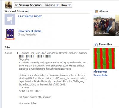 ২০১০ সালে সেপ্টেম্বরে সে RJ হয় বলে জানতে পেরেছি। এবং গত আড়াই বছরে মোটামুটি জনপ্রিয়তা অর্জন করে। এর মধ্যে বিভিন্ন মডেল ও মেয়ে সহকর্মীর সাথে ছবি তুলে সে ফেসবুকে আপলোড দেয়, কিন্তু ছবিগুলোর প্রাইভেসি দিয়ে রাখে, যাতে করে তার ফ্রেন্ডলিস্টে থাকা শিবিরের বড় ভাইরা তার ছবিগুলো দেখতে না পায়। কারণ এই কাজ নাকি শিবিরের সদস্যদের নিয়মের পরিপন্থী!