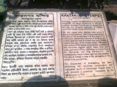 দিনাজপুর শহর থেকে ২১ কিলোমিটার দূরে কাহারোল থানার কান্তনগর গ্রামে অবস্থিত কান্তজিউ মন্দির। অনেকের মতে কান্তনগরে স্থাপিত বলে-এর নাম কান্তজিউ মন্দির। জনশ্রুতি আছে, শ্রী-কৃষ্ণের বিগ্রহ অধিষ্ঠানের জন্য এ মন্দির নির্মিত হয়েছিল। দিনাজপুরের তৎকালীন জমিদার প্রাণনাথ রায় ১৭২২ খ্রিস্টাব্দে পোড়ামাটির অলঙ্করণ সমৃদ্ধ এ মন্দিরটির নির্মাণ কাজ শুরু করেন। তবে তার জীবদ্দশায় এ মন্দিরের নির্মাণ কাজ শেষ করে যেতে পারেন নি। পরে ১৭৫২ খ্রিস্টাব্দে তারই পালক পুত্র রাম নাথ রায় মন্দিরের নির্মাণ কাজ শেষ করেন। এর পরে তিনি এ মন্দিরটি শ্রী কৃষ্ণের উদ্দেশ্যে উৎসর্গ করেন।
