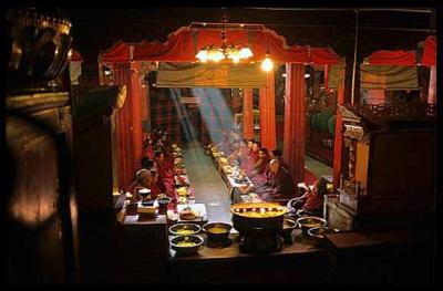 গুম্ফায় প্রার্থনারত ভিক্ষু