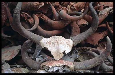 বলিদানকৃত ইয়াকের শিং ও মাথা