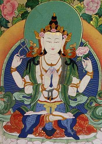 চতুর্ভূজ অবলোকিতেশ্বর তিব্বতি থাঙ্কা চিত্র