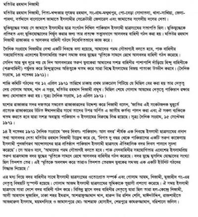 অথচ জামায়াতের সদ্য আমীর নির্বাচন হয়েছে সম্পূর্ন অস্বচ্ছ ও গোপন প্রক্রিয়ায়।একাত্তরের অন্যতম রাজাকার ও আলবদর বাহিনী প্রধান নিজামী কে আমীর ঘোষণা করা হয়েছে।অথচ তার প্রাপ্ত ভোট কিংবা প্রতিদ্বন্দী প্রার্থীর ভোট প্রকাশ করা হয় নি। Click This Link
