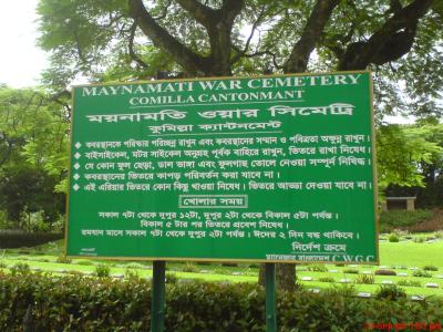 জানালা খুলে বাইরের দৃশ্য দেখতে দেখতে .... বাসের হেলপার ডাক দিল নামার জন্য। নেমে দেখি, ময়নামতির যাত্রী ছাউনী। সেখান থেকে একটু হেটে ১০ টাকা দিয়ে রিক্সা নিলাম, ওয়্যার সিমেট্রিতে যাওয়ার জন্য। ওয়্যার সিমেট্রিতে গিয়ে দেখলাম সবুজে ঘেরা সমাধিস্থল। দ্বিতীয় বিশ্বযুদ্ধে নিহতদের সমাধিস্থল এটা।