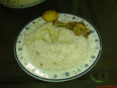 সেখান থেকে বের হয়ে ফিরে আসলাম কোটবাড়ি, এদিকে ক্ষুধায় অবস্থা কাহিল, ঢুকলাম এক মিনি চাইনিজে (না ঢুকেও উপায় ছিলনা, কারন ওটা ছাড়া সব খাবার দোকানই ছিল বন্ধ), গিয়ে শুনলাম মুরগী আর সাদা পোলাও ছাড়া কিছু নাই, তাই তাড়াতাড়ি আনতে বললাম, আনল প্রায় ২৫ মিনিট পরে, এত রাগ লাগল, কিন্তু খেতে গিয়ে দারুন মজা লাগল তাই রাগের কথা ভুলেই গেলাম।