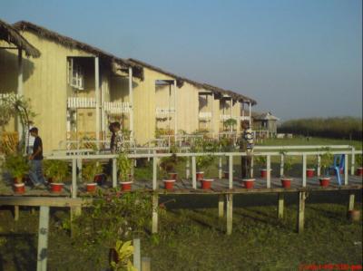 লৌহজং পৌছালাম পৌনে পাচটায়। ওখানে ভালো খাবার হোটেল বলতে একটাই পেলাম, নাম কাশফুল। সেখানে খেয়ে পদ্মা নদীর তীরে দাড়াতেই দেখলাম ওপার থেকে একটি ইঞ্জিনচালিত নৌকা আসছে। আসার পর শুনলাম পদ্মা রিসোর্টে যাওয়া-আসা, সাথে ওখানে ঘোরা সব মিলিয়ে নৌকাতে ৫০ টাকা (একজনের জন্য) দিতে হবে। টাকা দিয়ে নৌকায় উঠলাম। কিছুক্ষন পরেই নামিয়ে দিল নদীর ওপারে, পদ্মা রিসোর্টে। ভালোই করেছে জায়গাটা অবকাশ যাপনের জন্য, তবে অবশ্যই উচ্চবিত্তদের জন্য। অনেকগুলো কাঠের দোতলা কটেজ, নাম রাখা হয়েছে বাংলা মাসের ও ঋতুর নামানুসারে। কটেজের ভাড়া ২৪ ঘন্টার জন্য ৩০০০ টাকা। এখানে খাবারের দামও অনেক। কেউ আগে থেকেও ফোন করে কটেজ বুক করতে পারেন, ফোনঃ ০১৭১৩০৩৩০৪৯, ০১৭১২১৭০৩৩০। চারপাশটা খোলামেলা সুন্দর।