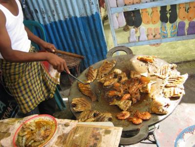 নেমেই ঢুকলাম খাবার হোটেলে... গরম গরম মাছ ভাজা হচ্ছে ..
