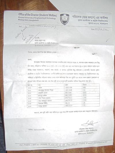 সারাদেশ যখন যুদ্ধাপরাধিদের বিচার এর রায় শুনার জন্য আকুল নয়নে তাকিয়ে আছে তখন বাংলাদেশ ইসলামী ছাত্র শিবির দেশের পরিবেশ অস্থিতিশীল করার নিয়ত নিয়ে দেশের বিভিন্ন শিক্ষাপ্রতিষ্ঠানে অস্থিতিশীল পরিবেশ সৃষ্টি করার জন্য গভীর ষড়যন্ত্রের পরিকল্পনা করছে। তারই একটি অংশ হিসেবে গত ২৬/১২/১২ খুলনা প্রকৌশল ও প্রযুক্তি বিশবিদ্যালয় এর অমর একুশে হল এ কুয়েট ছাত্রশিবির এর সভাপতি মেহেদি হাসান একটি জরুরি সভা আহ্বান করে। সভায় অমর একুশে হল ছাত্রশিবির এর সভাপতি মাহবুব (সি.এস.ই ০৯), অমর একুশে হল ছাত্রশিবির এর সাধারণ সম্পাদক শিমুল (পুর ১০) লালন শাহ হল সভাপতি মিনহাজ ( লেদার ১০) , ফজলুল হক হল সভাপতি নাজমুস সাকিব ( যন্ত্র ০৮), রাশিদ হল এর সভাপতি আসিফ আহমেদ (তড়িৎ ০৮) , খান জাহান আলি হল এর সভাপতি নাইম ( পুর ০৮) উপস্থিত ছিল। আগামী ৩০/১২/১২ তারিখে অমর একুশে হল এর বার্ষিক ফিস্ট থাকায় অমর একুশে হল এর হল কমিটি হল এর শান্তিপূর্ণ পরিবেশ বজায় রাখার ক্ষেত্রে এবং গত ০১/০১/১২ তারিখের ঘটনার কথা সরণ রেখে সজাগ ভুমিকা পালন করছে। এ অবস্থায় ছাত্রশিবির এর গোপন সভার কথা তারা জানতে পায়।এই খবর সাথে সাথে অমর একুশে হল ছাত্রলীগ সভাপতি নাজমুল হক মুন্না (পুর ০৮) জানতে পারে এবং সে তৎক্ষণাৎ অমর একুশে হল ছাত্রলীগ এর সহ-সভাপতি শামিম(সি.এস.ই ০৮), সাংগঠনিক সম্পাদক লেলিন ( আই.ই.এম ০৯), রাজিব ভক্ত ( আই.ই.এম ০৮ ),সবুজ (তড়িৎ ০৮), বাপ্পি(পুর ০৯), লিপু ( পুর ০৯) , আলো ( পুর ১০) , পলাশ ( পুর ১০) , সনেট ( পুর ১০) ,নিহার ( পুর ১০) , শাহদাত( নগরপরিকল্পনা ১০) ,সম্রাট( পুর ১০) শুভ(ইসিই ১০) , আশিক( ইসিই ১০) ,জিসান( পুর ১০) ,সিমান্ত( তড়িৎ ১০) সহ ছাত্রলীগ এর আরও অনেক নেতা কর্মীদের নিয়ে ২০২ ও ২০৩ পূর্ব কক্ষে যায়। তারা সেখানে গিয়ে তাদেরকে গত ০১/০১/২০১২ এর ঘটনার পুনরাবৃত্তি ঘটালে পরিনাম ভাল হবে না বলে হুমকি দেয়। এক পর্যায়ে ছাত্রলীগ এর কর্মীরা ছাত্রশিবির এর রুম তল্লাশি চালায় এবং সেইখানে বিপুল পরিমান এর জিহাদি বই,বোমা বানানোর সার্কিট,ড্যাগার, টাকা লেন-দেন এর রশিদ, ছাত্রলীগ এর নেতাকর্মীদের নামের ব্ল্যাকলিস্ট, জিহাদি ডিভিডি ইত্যাদি পাওয়া যায়। তৎক্ষণাৎ বিশ্ববিদ্যালয় প্রশাসনের সাথে যোগাযোগ করা হলে তারা প্রমান চায় এবং তদন্ত কমিটি গঠন করে। উপযুক্ত প্রমানের প্রেক্ষিতে তারা শিবিরের উক্ত নেতাকর্মীদের হল থেকে আজীবন বহিস্কার করে এবং শুধুমাত্র পড়া-শুনা ব্যাতিত বিশ্ববিদ্যালয়ের অন্য সকল প্রকার কার্যক্রম থেকে নিসিদ্ধ ঘোষণা করে।