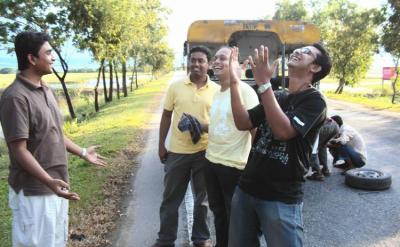 সিলেট নাইম্যা এইবার জাফলং, তামাবিল…গাড়ি পাইতে গিয়া জান তামা তামা! চেইত্যা গিয়া পুরা একটা বন্ধু পরিবহন ভাড়া কইরা ফালাইলাম। তারপর বাতাস খাইতে খাইতে, গান শুনতে শুনতে, ঢুলতে ঢুলতে, যাইতে যাইতে আতকা একটা এটোম বুমা ফুটল…(ঠিক যেন সাহারাতে ফুটলোরে ফুল…)! যাইগ্যা দেখি গাড়ি মুসা (আঃ) এর লাডীর লাহান সাপ হয়া গেসে! খালি রাস্তায় বিশাল স্পিডে এউক্কা বেউক্কা চলতাসে আর আমরা গড়াগড়ি খাইতাসি! চাক্কা বার্স্ট !! কোনমতে গাড়ী থামসে, আমরা নাইম্যা মহান আল্লাহ পাকের শুকরিয়া আদায় করলাম, হে প্রভু, ব্যাচেলর অবস্থায় মউত না দেয়ার জন্য তোমাকে এ লট অফ থ্যাঙ্কস। আর বিবাহিত বন্ধু নাহিদ থ্যাঙ্কু জানাইল আগামী দুই বছর পর জন্ম হবে তার যে সন্তান, তাকে এতিম না করার জন্য। আমরা হিংসায় অর দিকে টেরা চোখে তাকাইলাম।