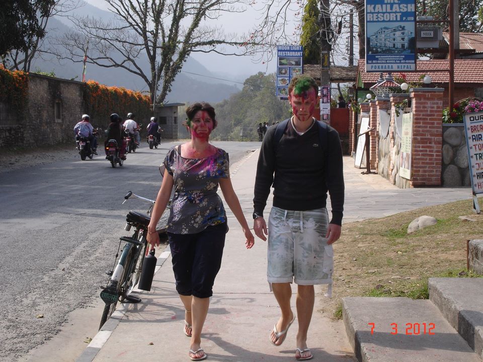 ২০১২-এর হোলীর দিনে আমি পোখরায় ছিলাম। ভয়ে ভয়ে বেরিয়েছিলাম। দেশী –বিদেশী সবার শরীরে রঙ দিয়ে মাখা-মাখি। আমরা একটা রেষ্টুরেন্টে বসে ছিলাম। বাইরে বের হই নাই। ওদের রঙ মাখামাখি শেষ হলে বেরিয়ে কিছু ছবি তুলেছি।