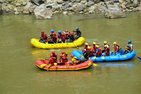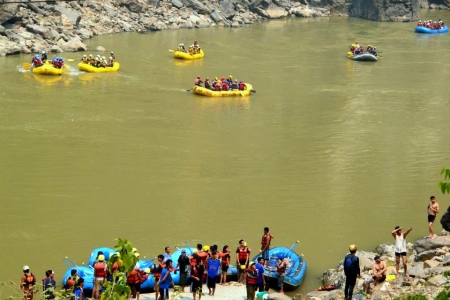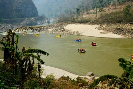 ওখানে কিছু সময় কাটিয়ে চললাম কাঠমান্ডুর পথে। রাস্তার ডানপাশে সুউচ্চ পাহাড়, বামপাশে গভীর পাহাড়ী নদী। মনোকামনা মন্দির থেকে কাঠমান্ডু ৪/৫ ঘন্টার পথ। পথে আমদের দৃষ্টি কেড়ে নিল পাহাড়ী নদীতে র্যাফটিং । যাত্রাবিরতি দিতেই হলো। নদীর পাড় ঘেঁসে গাড়ী থামিয়ে নেমে পড়লাম সবাই। আচ্ছন্ন হয়ে দেখলাম ওদের ঐ র্যা্ফটিং। ছুটির দিন, অনেকেই এসেছে। কিছু নৌকাতে কয়েকজন, কিছু একজনের নৌকা। সারি সারি রঙ বেরঙের নৌকা, মহা আনন্দে ঝাঁপা-ঝাঁপি করছে। এপ্রিল মাস, নদীতে পানি কম। তবুও ওদের উৎসাহের কমতি নেই। ওদের মাঝে পর্যটকও আছে, এমনকি মেয়েরাও আছে। আমাদের দেশে পাহাড়ী নদীতে হয়তো এমন র্যারফটিং চলে, কিন্তু কখোনো আমার তা দেখবার সৌভাগ্য হয়নি। নদীর পাড়ে বেশ কিছু সময় কাটিয়ে, আমাদের কাঠমান্ডূ পৌছুতে আঁধার নেমে এল। শেষ হলো নতুন বছরের প্রথম দিন।