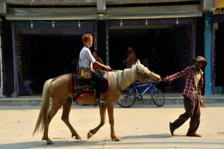 ঐ রাস্তায়ই ঘোড়ায় চড়ে বেড়াচ্ছেন এক পর্যটক