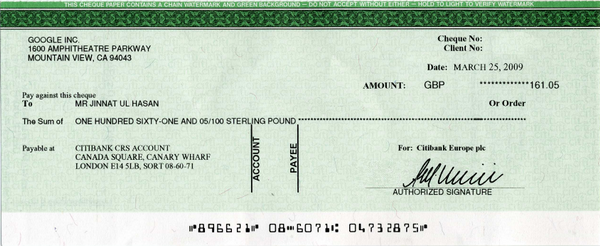 সূত্র: গুগল এডসেন্স চেক - মার্চ, ২০০৯