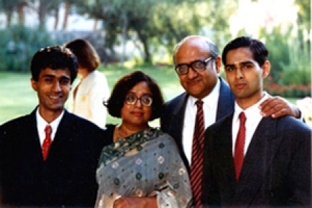 (১৯৯৩স সালে দুই পুত্র- বাবর ও জাফর এবং স্বামী রেহমান সোবহানের সাথে সালমা সোবহান)