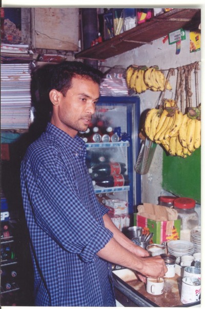 দিনের পুরো সময়টাতেই সেখানে তাকে হাসিমুখে বসে থাকতে দেখা যায়। বসে আসলে নয়, তিনি থাকেন দাঁড়িয়ে। আর ব্যস্ত দু'হাতে সমানে কাজ করে যান।