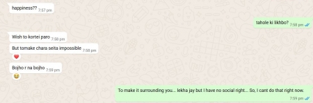 @ তাইলে তো আমার একাউন্ট থেকে কিছুই দেখ না। আমি ভাবি, তুমি দেখতে পাও, দেখ হয়ত। তাই রিয়েল টাইমে রিয়েল মুড রিলেটেড পোস্ট দেই।