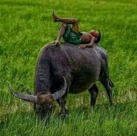 সারাদিন আমি মহিষের পিঠে চড়েই বেড়ালাম। শুয়ে থাকলাম। এর ভেতরে আমি শিখে গেলাম, ডান পা দিয়ে বুকের কাছে ঘুতা দিলে সে ডানে যায়, বামে দিলে বামে যায়। আর দুপা দিয়ে এক সাথে চাপ দিলে হাটা শুরু করে। চু চু থাম বললে থেমে যায়। এই এতটুকু কন্ট্রোলে আমার যে কি খুশি মনে মনে। নিজেকে অনেক কিছু মনে হচ্ছিল।