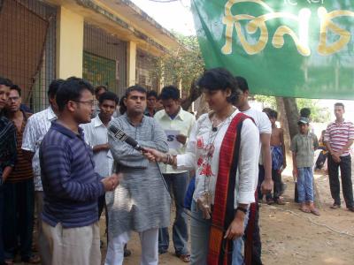 মুন্নী সাহা তিন চাকার আয়োজক শিশির সালমানের সাথে কথা বলছেন