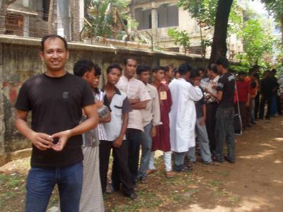 অপেক্ষমান রিকশাচালক অডিশনের জন্য