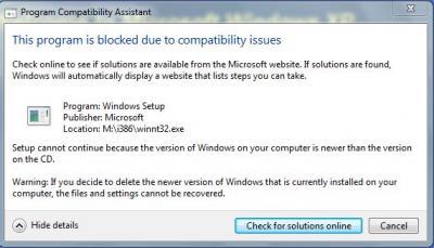 ** নিউয়ার ভার্সন ইন্সটল করা আছে, তাই পুরোনো ভার্সন সে ইন্সটল করতে দেবেনা, সমস্যাটা এরকম । অর্থাৎ সেভেন নিউয়ার, আর এক্সপি পুরোনো...