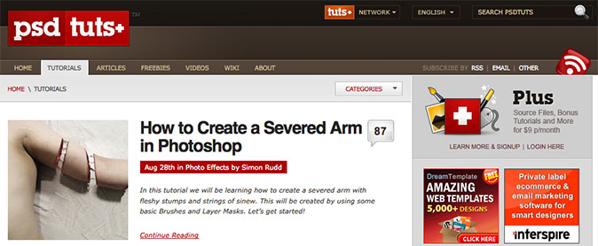 আমার সবচেয়ে প্রিয় টিউটোরিয়াল সাইট। আসলে এটি এনভেটো মার্কেটপ্লসের একটি শাখা সাইট। এনভেটো নিয়ে পরে আলোচনা করব। শুধু এটুকু আপতত জানিয়ে দেই এদের শুধু ফটোশপ না অ্যাডোবি-র প্রায় সব সফটওয়্যারের টিউটোরিয়ালই পাবেন এদের সাইটে, এমনকি ফটোশপের কাজ বিক্রী করার জন্যই এদের সাইট আছে।
