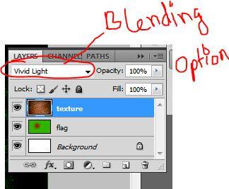 ছবিটি transform করার জন্য texture লেয়ার সিলেক্ট থাকা অবস্থায় Ctrl+t চাপুন এবং টেক্সারটি flag লেয়ারের সমান মাপে এনে টিক চিহ্ন বাটনটি(Accept) চাপুন।