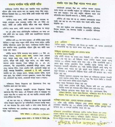 শান্তি কমিটি গঠেনর পর ১২ এপ্রিল ঢাকায় ঢাক ঢোল পিটিয়ে মিছিল করা হয়।
