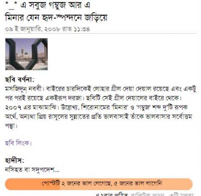 দৃষ্টির ছায়া নামে এক দ্বীনি মুছলমান আছেন ব্লগে। ডেইলি উনি মসজিদে নববীর ওপর একেক্টা পর্ব নামাইতেছেন। কিন্তু এইগুলাসহ উনার এমন কোন পুস্ট নাই, যেইটাতে গণহারে মাইনাস রেটিং নেই। তাও এক্টা দুইটা নয়, ঝাঁকে ঝাঁকে মাইনাস। এইটা নিয়া আমার কোন মাথাব্যথা নাই। শুধু