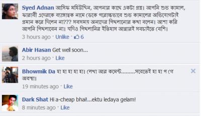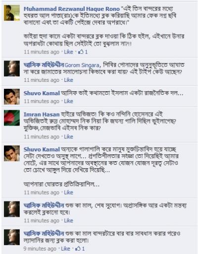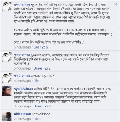 তবে সে এবার ভালোই ধরা খেয়েছে, কেন জানি মানুষ জেগে গিয়েছে, আসিফ ভাই আর ব্লক করে কূল পাচ্ছে না। মজার মজার কিছু কমেন্ট পড়ুন এবার। আমাকে লোকটা ব্লক করে দিয়েছে তাই আমি ভালোভাবে মজা নিতে পারছি না, ভাইব্রাদার যে স্ন্যাপশট পাঠায় সেটাই ভরসা। আমি সবাইকে বলে দিয়েছিলাম সবাই যাতে তার প্রোফাইলে get well soon লিখে আসে, শোনলাম আসিফ নাকি এই উইশ ডিলিট করে করে কূল পাচ্ছে না। হাহাহা… অনেককিছুই নাকি ডিলিট করে ফেলেছে, তবু কিছু স্ন্যাপশট দিলাম।